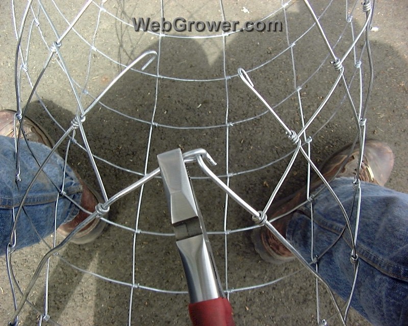 There are numerous methods, limited only by personal preference and imagination, for keeping tomato plants off of the ground. This step-by-step article presents a simple, cost effective solution for creating a large number of baskets. These are much sturdier than the wire hoop baskets available at local hardware stores and garden centers in the spring, and work well for plants with determinate habits, as well as with indeterminate varieties when anchored to a post.
